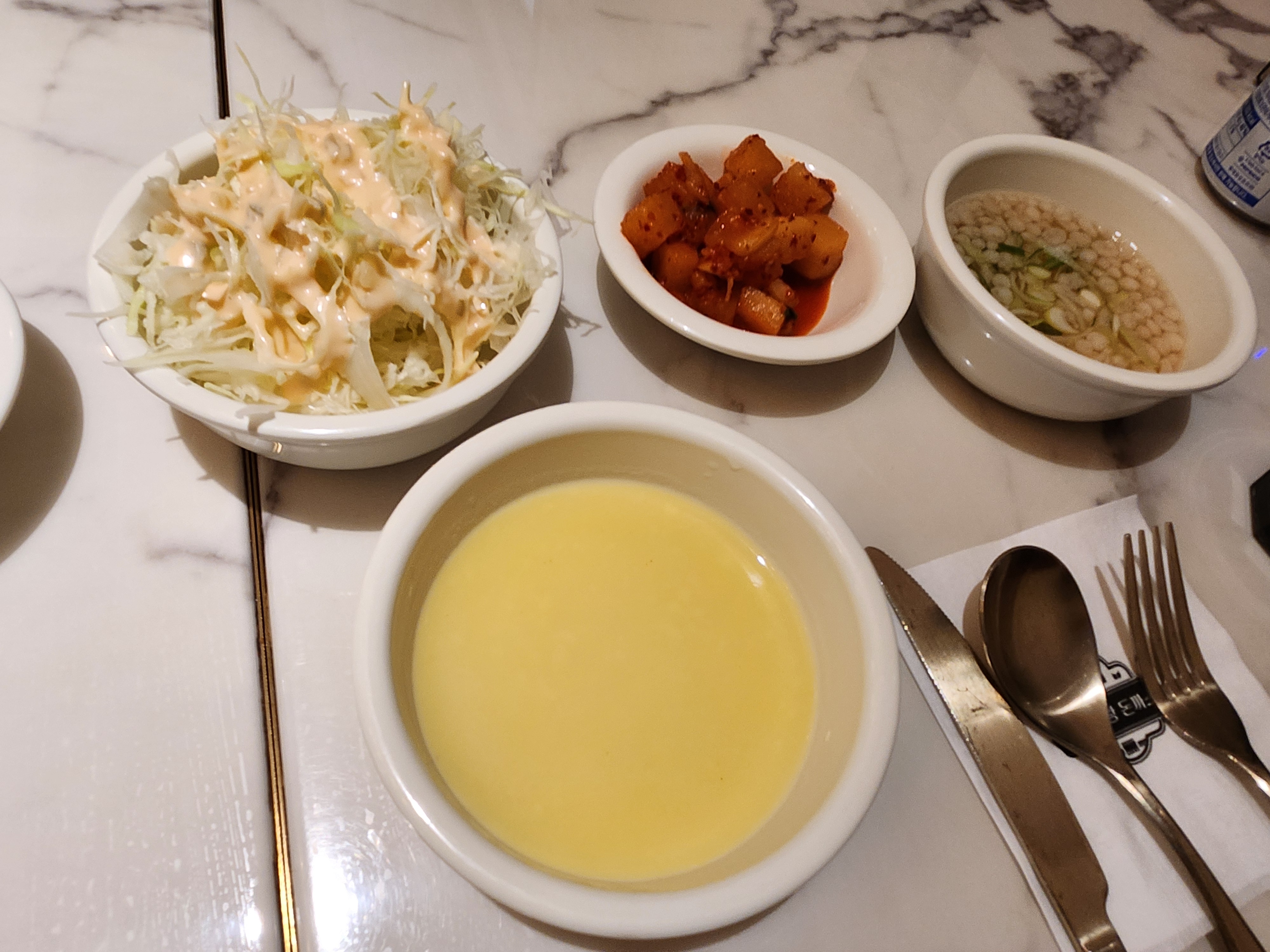수프와 밑반찬들은 매장 가운데에 있는 셀프바에서 가져올 수 있었는데요